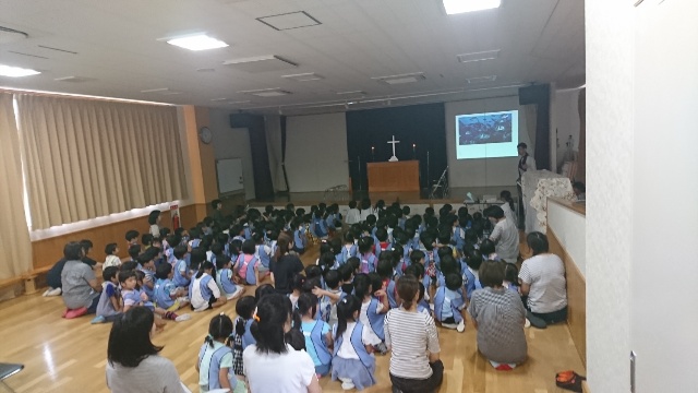 みんなの前で、マイクで「おはよう」とご挨拶をされました。