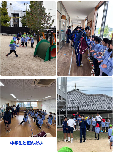 ★中学生とも遊びました。大型絵本の読み聞かせや外遊びが盛り上がりました。