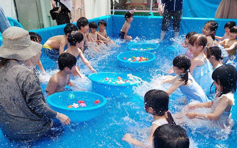 めぐみ幼稚園では専門講師による体育指導(全園児)と英会話教室(年長児)を実施しています。